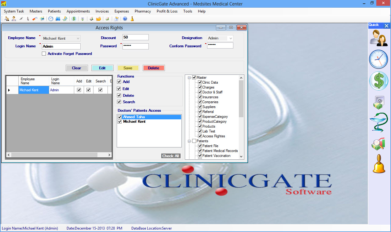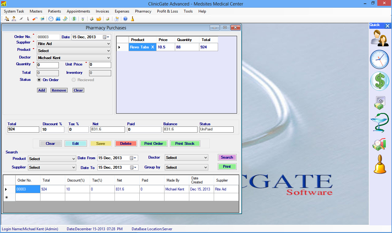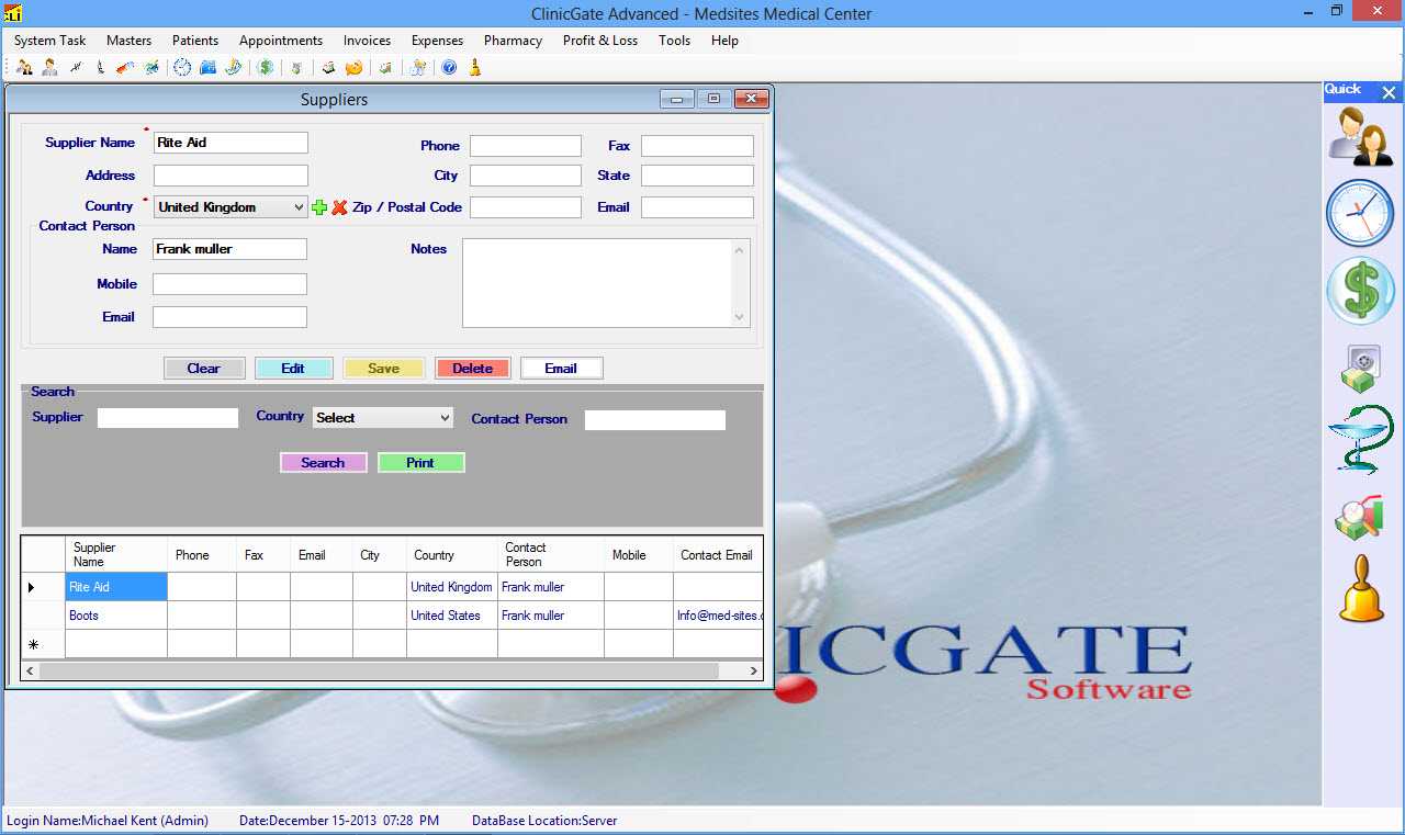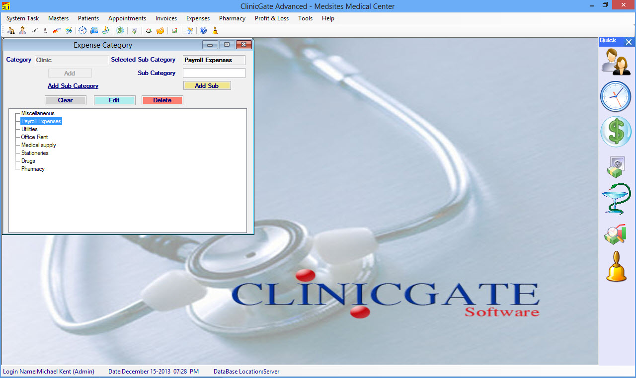 ClinicGate es un software médico integral que presenta una interfaz Windows intuitiva que integra a la perfección sistemas de registro médico electrónico (EMR), facturación médica, programación de citas, Historia Clínica Electrónica (HCE), códigos CIE-10, procesamiento de reclamaciones de seguros CMS 1500, seguimiento de cuentas por cobrar, gestión de gastos y generación de informes personalizados e información gráfica.