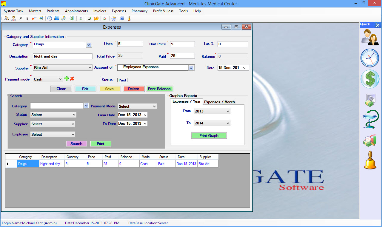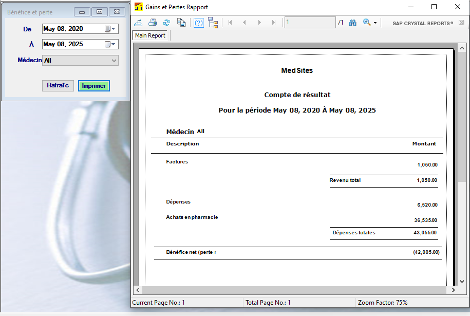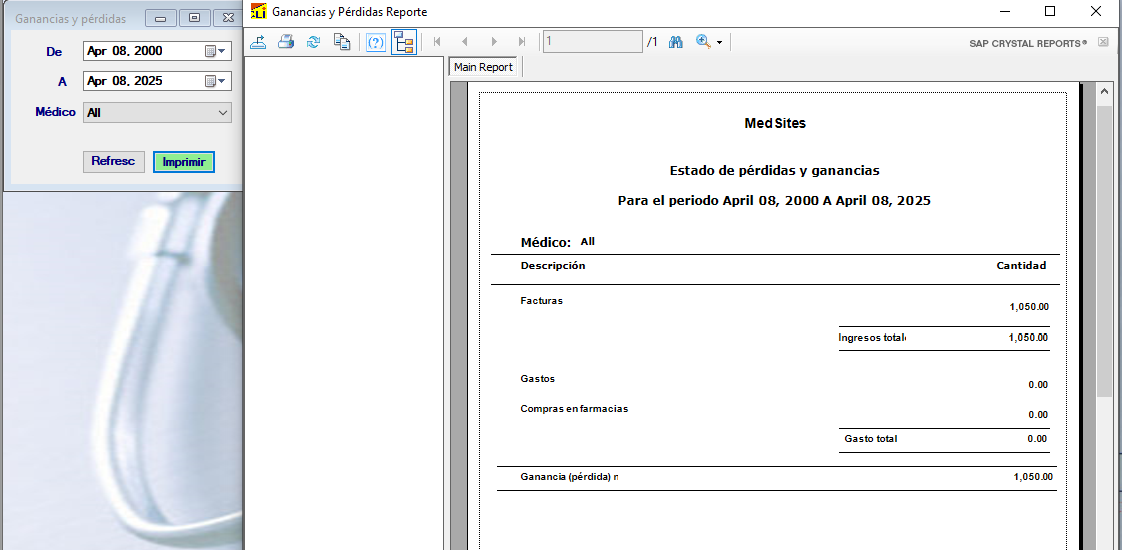 Ver e imprimir las ganancias y pérdidas diarias, mensuales y anuales de los médicos Pérdidas