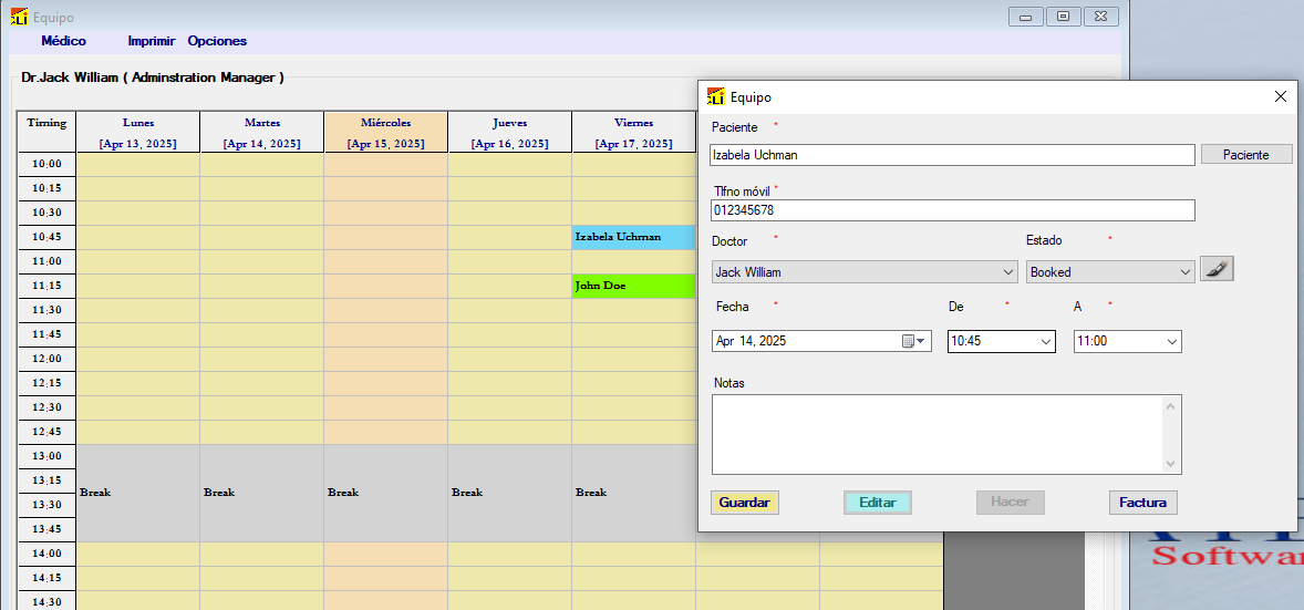 Imprimir facturas diarias, mensuales y anuales de cada médico