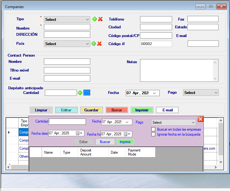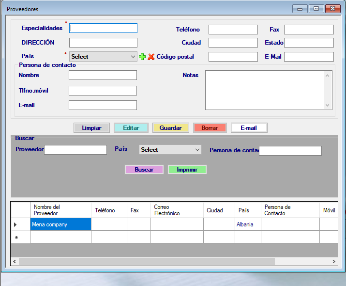 Añadir, Editar y Eliminar Compañía Proveedora y Persona de Contacto