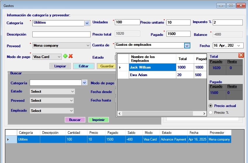 Ver e imprimir gastos de consulta diarios, mensuales y anuales