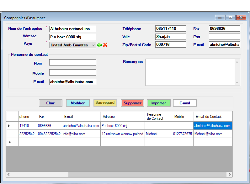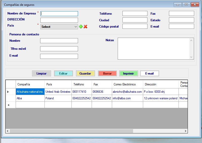 Añadir, Editar y Eliminar Compañía de Seguros y Persona de Contacto