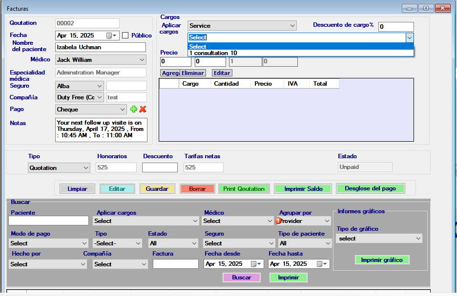Imprimir facturas diarias, mensuales y anuales de la consulta