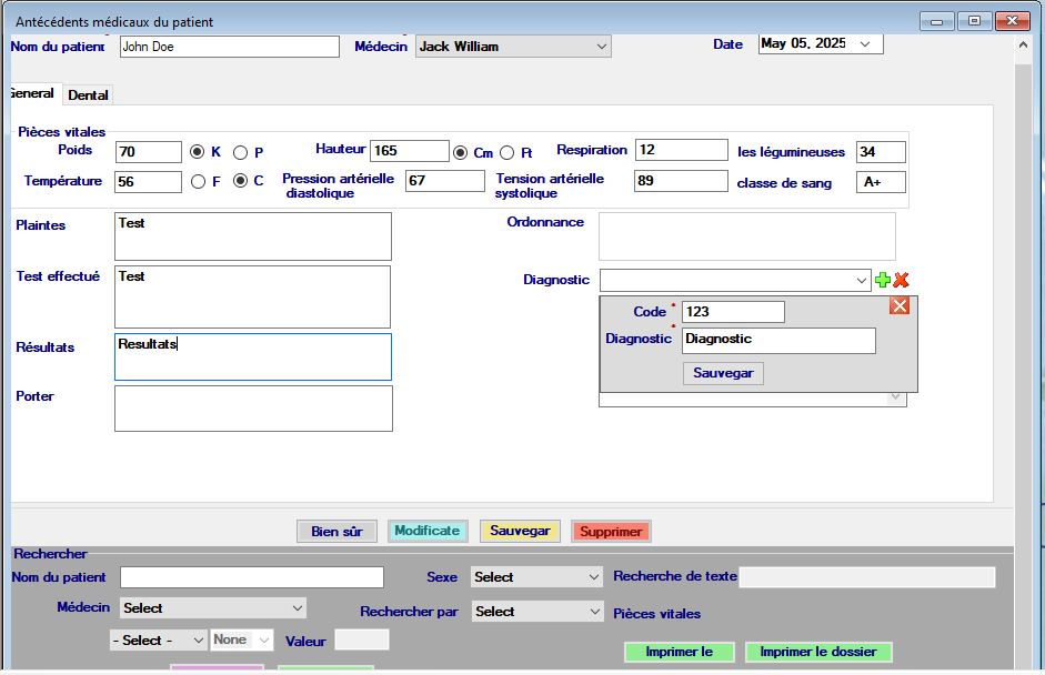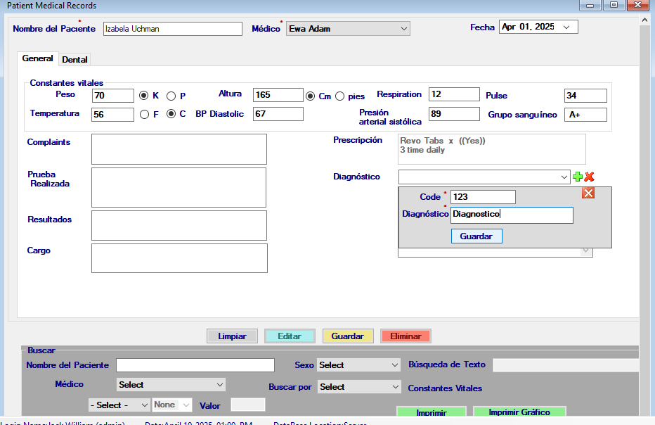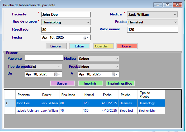Añadir, editar y eliminar historial de análisis de laboratorio del paciente