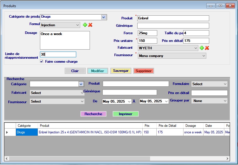 Ver e imprimir Imprimir productos de la clínica por proveedor