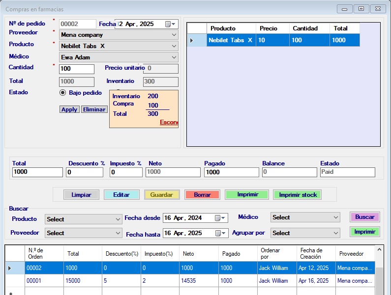 Ver e imprimir compras de farmacia diarias, mensuales y anuales