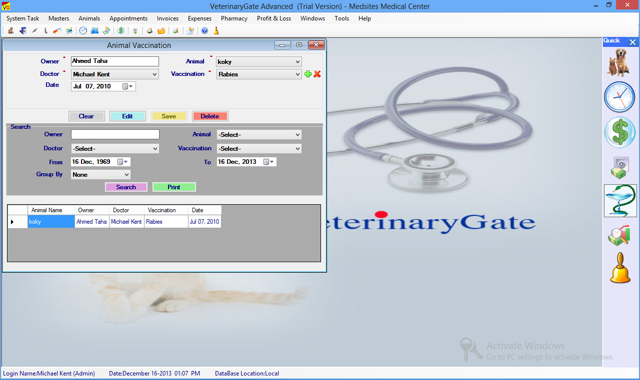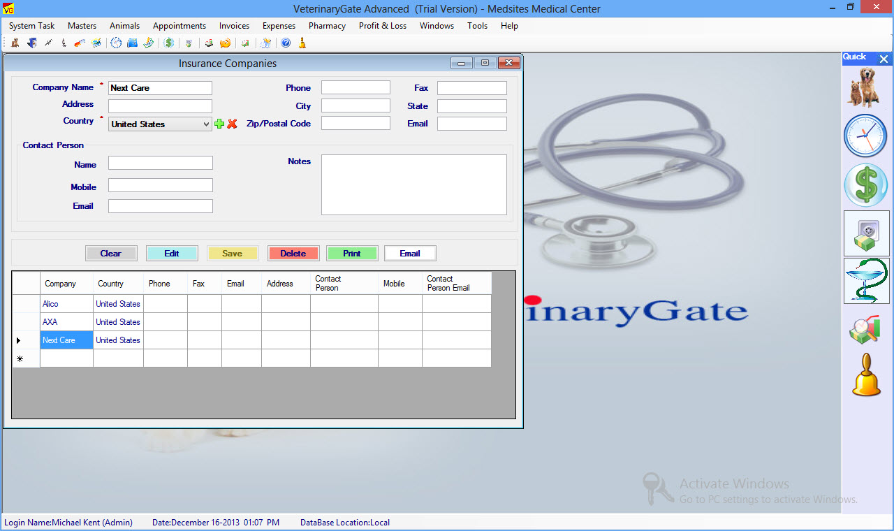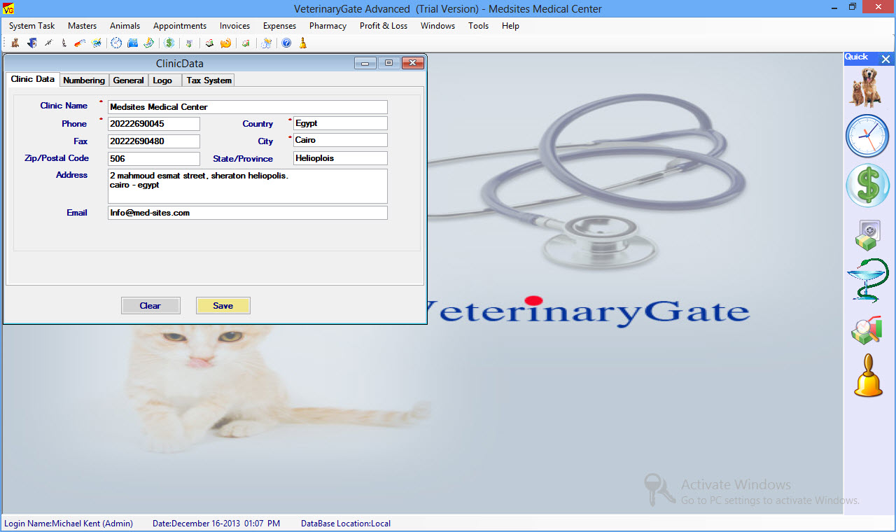VeterinaryGate is a Network and Multi-User Veterinary Software, Veterinary Office Billing Software, Animal Medical Records Software and Veterinary Practice Management Software for Samll-Large Veterinary Medical Practice that contain all the Financial, Clinical, and Operational elements For a successful running Veterinary Practice.