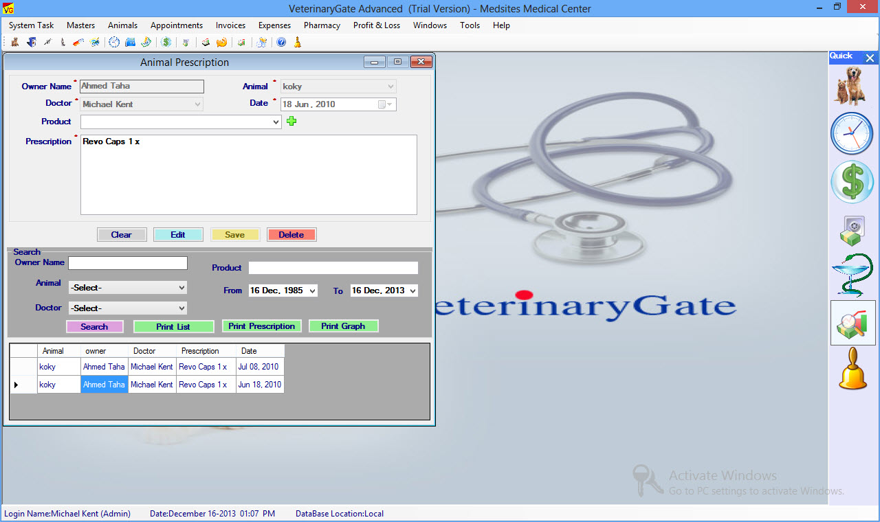 Add, Edit & Delete Animal Prescription